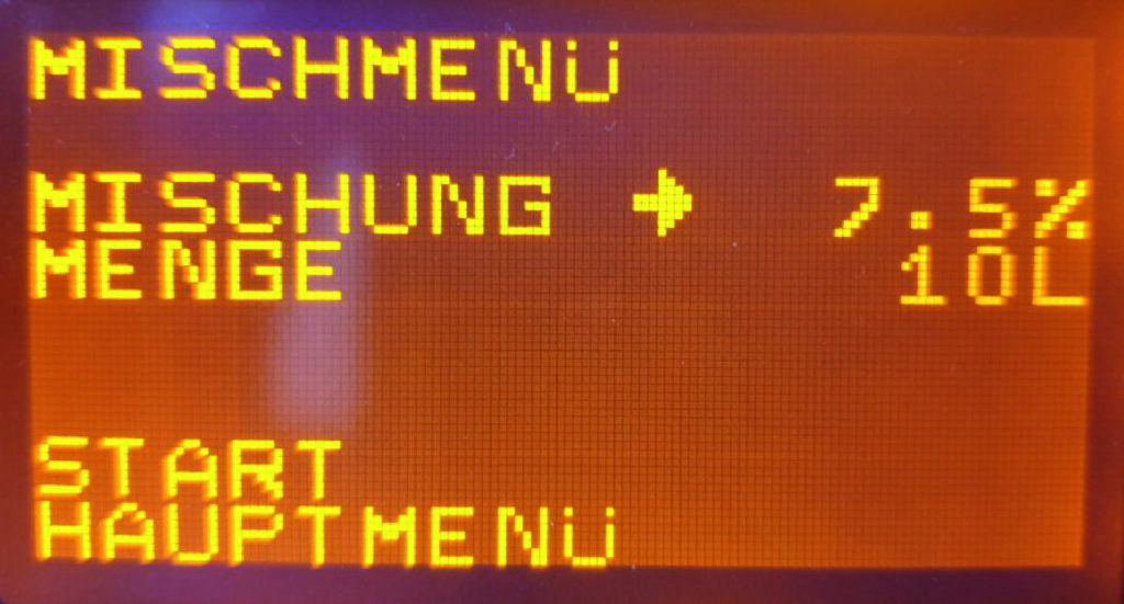 tarvittava pitoisuus 7,5 % = syöttö Misceo 7,5 %.