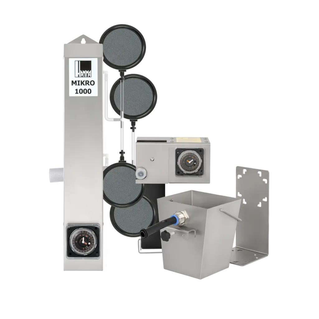 Während der Nutzungsdauer Ihres Kühlschmierstoffes sorgt der Mikrobelüfter MIKRO durch kleinste Luftblasen für eine ausreichende Sauerstoffversorgung. Die Hygieneeigenschaften des Mediums werden drastisch verbessert. Schwebstoffe werden an die Oberfläche befördert und können vom RAPID Ölskimmer ausgetragen werden. In der Pflegephase Ihres Kühlschmierstoffes entfernt der Ölskimmer RAPID unerwünschte aufschwimmende Öle, Kalkseifen und Schwebstoffe. Die Leistungsfähigkeit Ihres Kühlschmierstoffes wächst und Sie produzieren sicherer, schneller und besser.